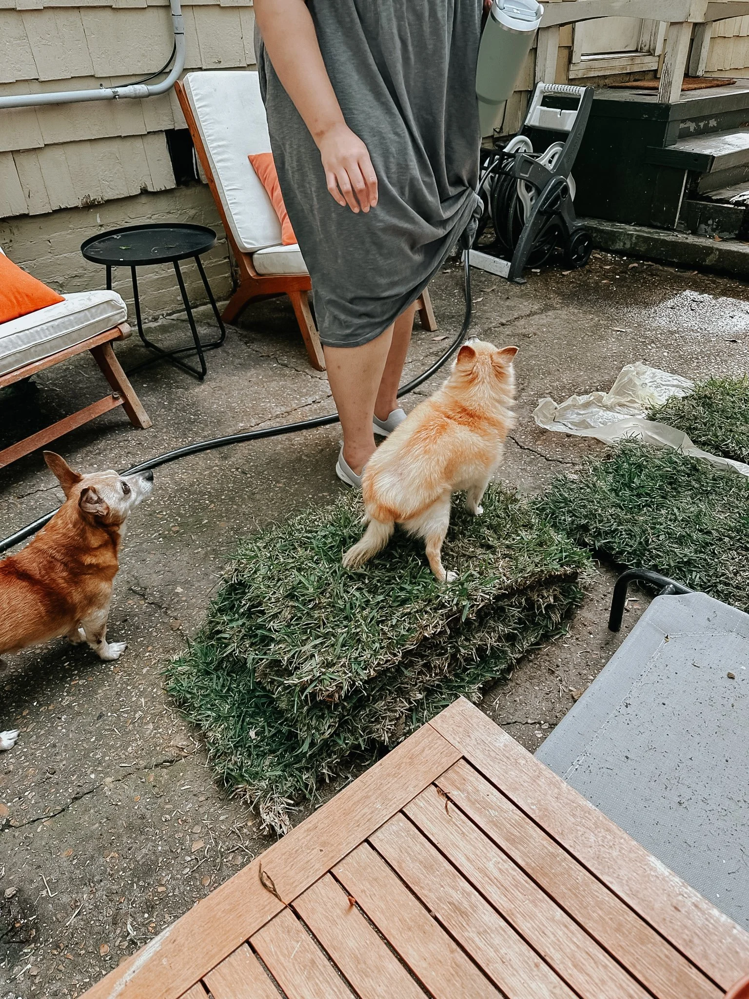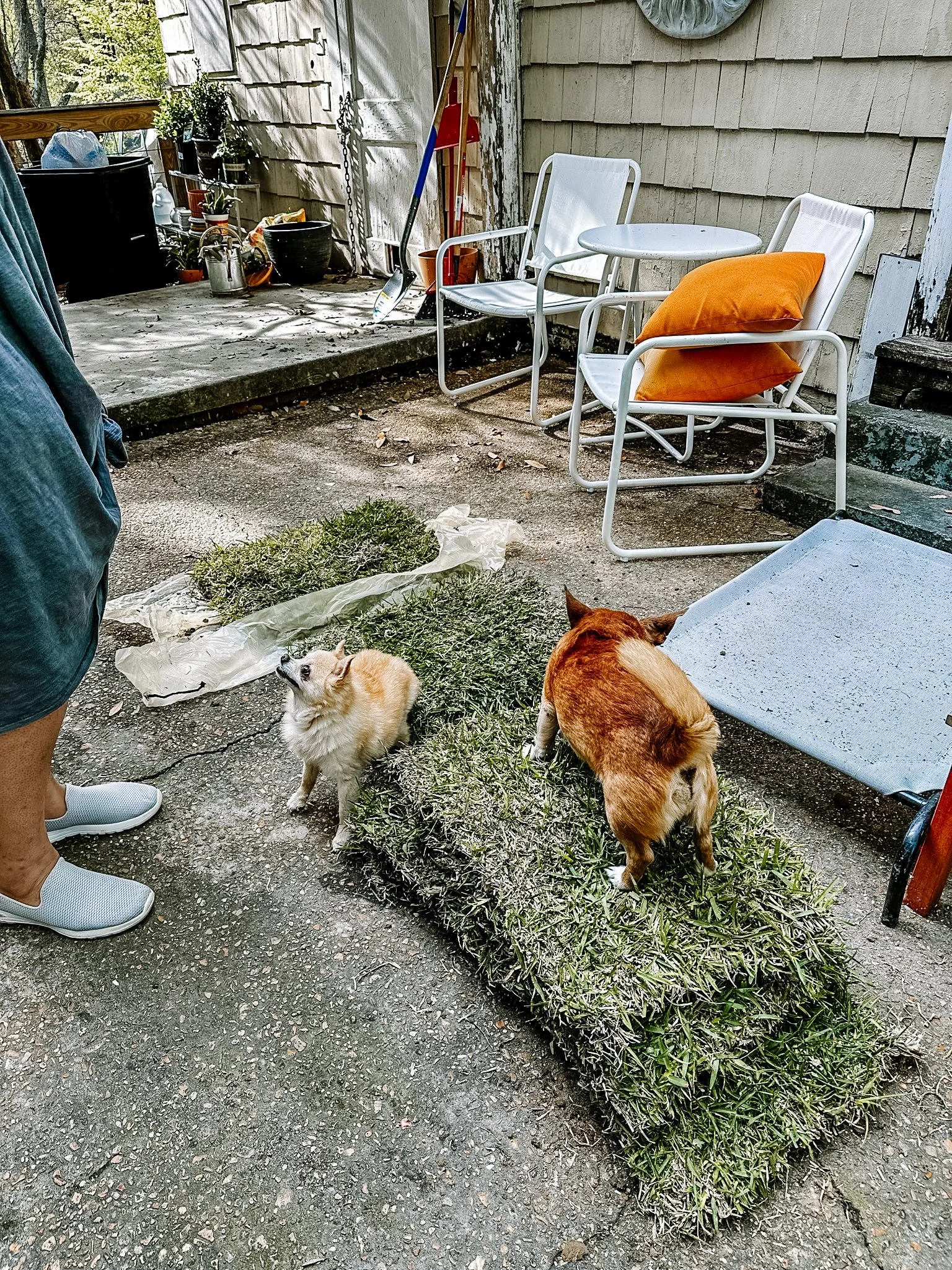 Roxxie and Maxx joining as I prep to lay sod during the summer months.